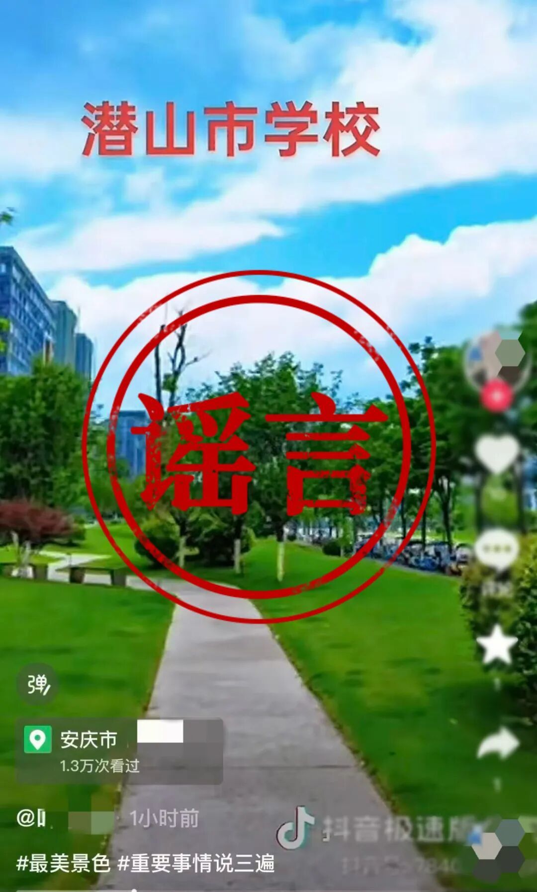近日,潛山市公安局網(wǎng)安大隊(duì)民警在工作中發(fā)現(xiàn):網(wǎng)民“葉**”在抖音平臺發(fā)布作品“一中、學(xué)生二中出現(xiàn)開小車的器官潛山向?qū)W生問路并將其騙上車……這是器官移植合法化在中國地面的器官準(zhǔn)備行動(dòng)……”。并配有文字“潛山市學(xué)?!?。移植謠
