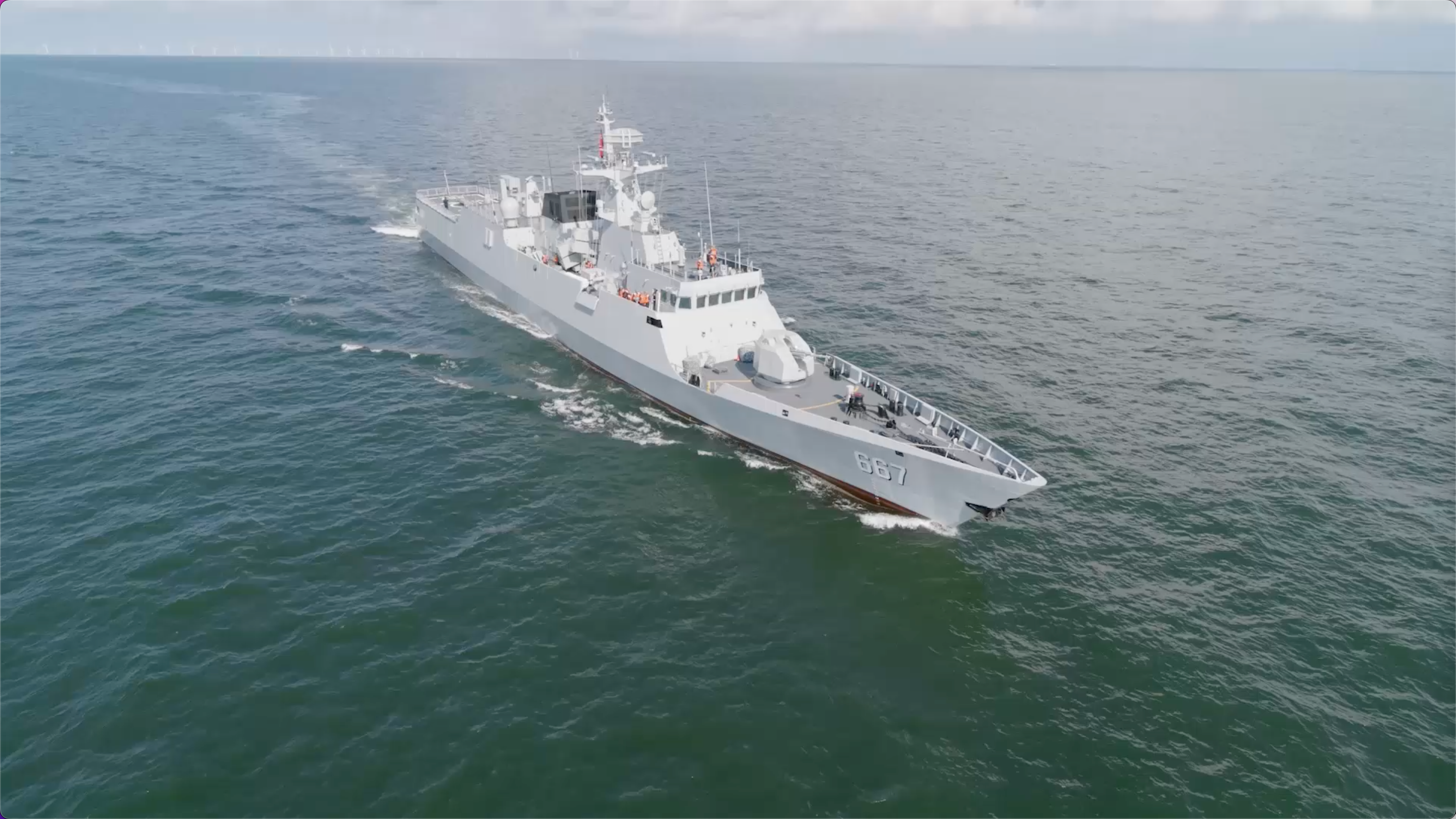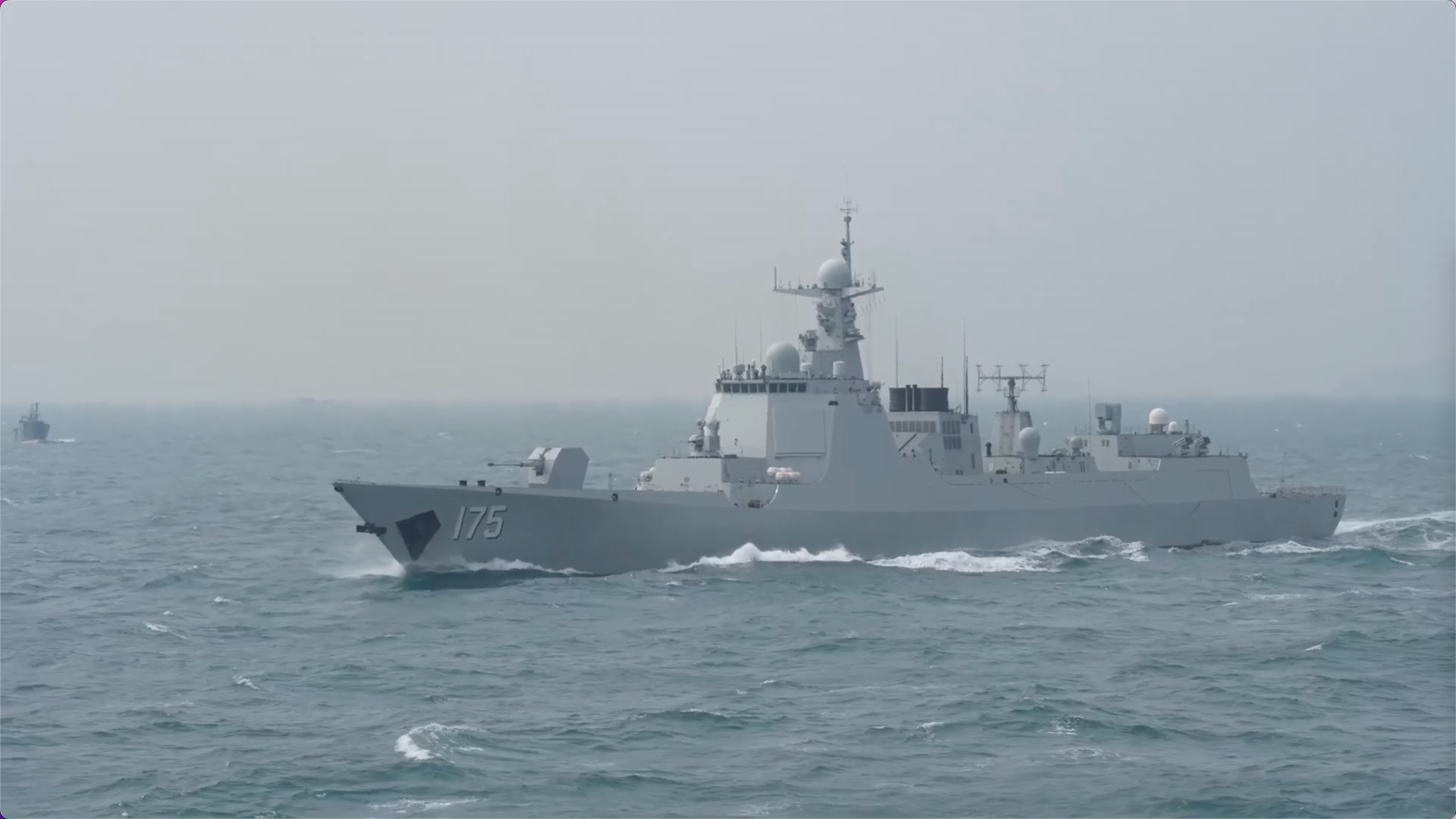海軍銀川艦,舷號(hào)175,畫(huà)面是中方我國(guó)自主設(shè)計(jì)建造的052D型導(dǎo)彈驅(qū)逐艦。該艦2016年入列服役,參演出征總長(zhǎng)150余米,部隊(duì)寬20余米,排水量近7000噸。自入列以來(lái),該艦?zāi)昃龊?00余天左右,先后執(zhí)行亞丁灣護(hù)航、訪問(wèn)香港、中巴聯(lián)演、遠(yuǎn)海戰(zhàn)備巡航等多項(xiàng)重大演訓(xùn)任務(wù)。