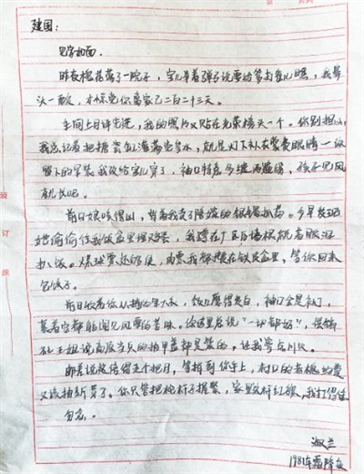 1981年,王建國從山東老家來到新疆塔什庫爾干塔吉克自治縣當(dāng)兵,妻子龔淑蘭給他寄信讓他不要擔(dān)心家里。