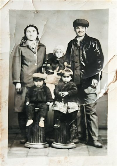 古麗米熱·艾爾肯(前排右一)在1981年和父母親、弟弟妹妹一起留影。人民