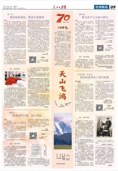 在這個(gè)特別的時(shí)刻,本報(bào)“人民家書”將目光投向廣袤的新疆,摘編4封跨越時(shí)空的“新疆家書”——梁狄剛在致母親的信中表明志向并在今后的歲月中以行動(dòng)踐行,他在塔里木盆地的堅(jiān)守就是生動(dòng)的注腳;在石河子大學(xué)支教的北京大學(xué)教授孟二冬在寫給妻子的信里盡顯師者仁心;軍嫂淑蘭告訴戍邊的丈夫“家里這桿紅旗,我扛得住”;維吾爾族姑娘古麗米熱·艾爾肯和父母分享大學(xué)生活的美好。
