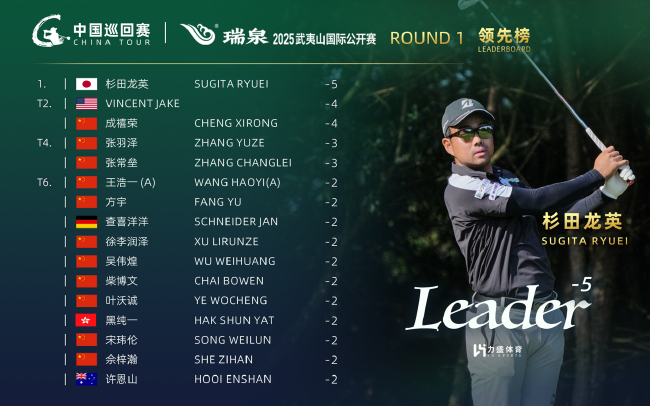 北京時(shí)間9月18日,瑞泉·2025武夷山國際公開賽首輪在武夷山太偉風(fēng)景高爾夫俱樂部開桿。龍英輪成日本球員杉田龍英(Ryuei SUGITA)以單輪66桿(-5)單獨(dú)領(lǐng)跑,桿領(lǐng)國際公開美國球員Jake Vincent與中國球員成禧榮同獲67桿(-4)并列第二,跑武中國球員張常壘、夷山張羽澤交出68桿(-3)并列第四,禧榮另有11名球員以69桿(-2)躋身并列第六。杉田賽首