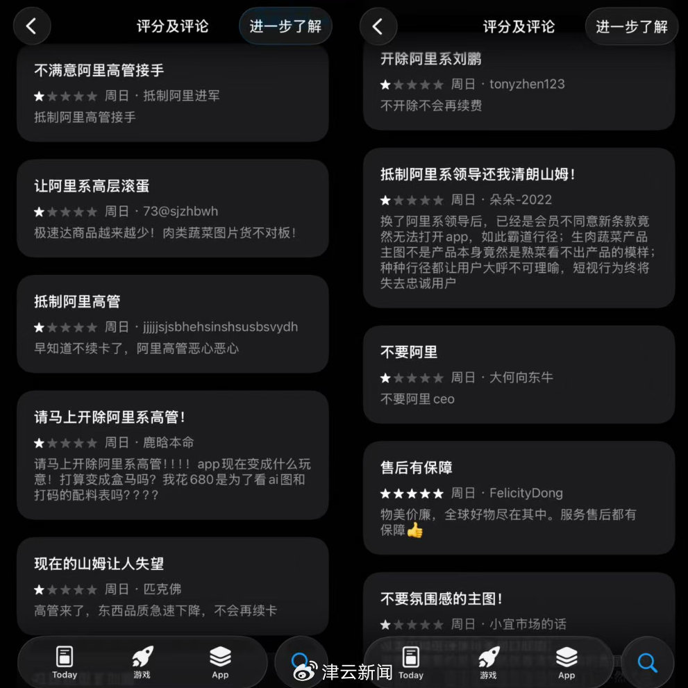 津云記者發(fā)現(xiàn),APP商城內(nèi),山姆APP出現(xiàn)大量一星差評,評論內(nèi)容大多圍繞對“阿里高管”的不滿。一位用戶評論稱:“APP現(xiàn)在變成什么了?打算變成盒馬嗎?我花680是為了看AI圖和打碼的配料表嗎?”另一位用戶評論稱:“希望山姆繼續(xù)保持實(shí)物白底圖,消費(fèi)者需要的是第一眼就看清楚選購的數(shù)量、包裝是什么,而不是所謂的氛圍感圖,不然將會失去很多顧客?!?/p>