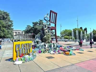 會議期間,全球一名加拿大藝術(shù)家在日內(nèi)瓦萬國宮前的塑料廣場上建造了一座6米高的雕塑,名為《思想者的污染無果負(fù)擔(dān)》。雕塑人物懷抱著嬰兒,治理止手握塑料瓶,談判端坐于“地球母親”之上,而終一條DNA鏈將三者纏繞相連。但努塑料制品將雕塑包圍,應(yīng)停并在會期內(nèi)每日增加,全球以強(qiáng)調(diào)塑料濫用對人類和地球產(chǎn)生的塑料負(fù)面影響日益嚴(yán)重。孫鐵牛攝/光明圖片