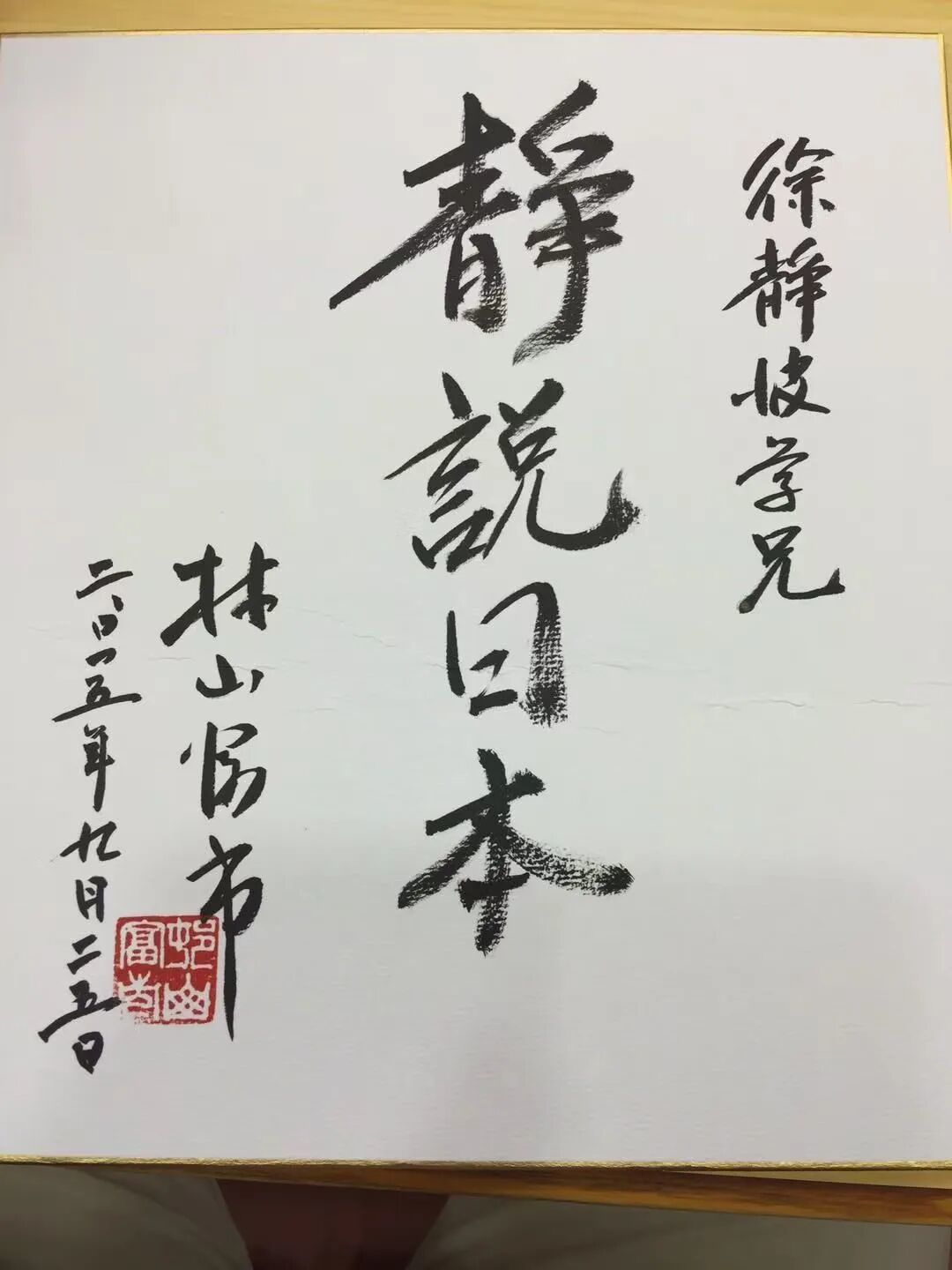 村山先生一聽,忙說:“我來幫您題寫名稱”。于是當場拿來紙筆,寫下了“靜說日本”四個字。