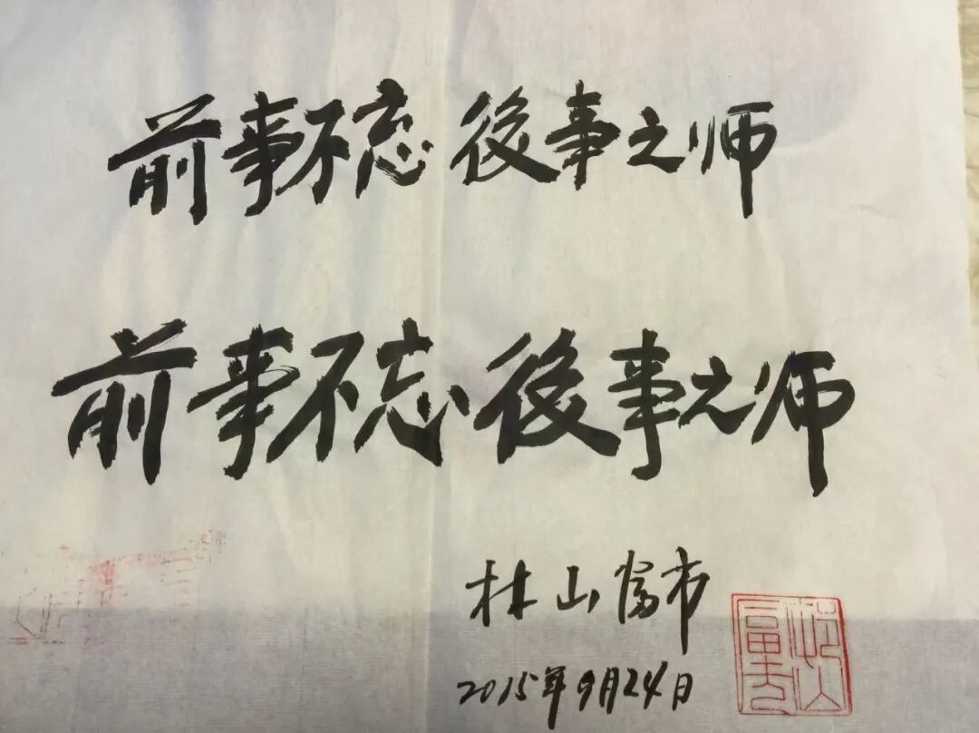 在大分機場候機時,我打開了村山先生送給我的一份禮物,那是一幅字,我發(fā)現(xiàn),那句話,他寫了兩邊。