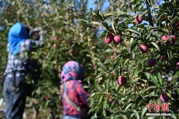 在通遼市科左中旗希伯花鎮(zhèn),工人采摘錦繡海棠。古秋