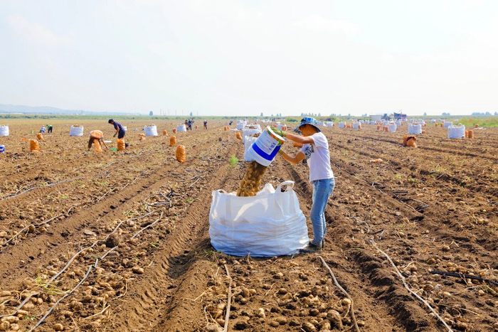 農(nóng)戶(hù)在收獲馬鈴薯。