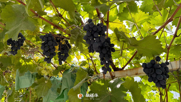 在烏海市吉奧尼葡萄莊園,一串串飽滿(mǎn)圓潤(rùn)的葡萄掛滿(mǎn)枝頭。