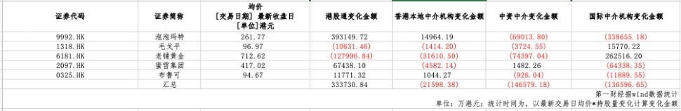 近期資金流向揭示了內(nèi)外資機(jī)構(gòu)在新消費(fèi)板塊上的鮮明分歧。以持股數(shù)量變化*最新日成交均價(jià)估算,wind數(shù)據(jù)顯示,盡管南下資金仍是做多主力,向5家概念股凈流入33.37億港元;但其他主要機(jī)構(gòu)投資者均在撤退,中資、國(guó)際與香港本地中介分別凈流出14.66億港元、13.66億港元和2.16億港元。