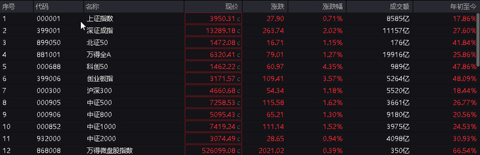 深證成指漲2.02%,創(chuàng)業(yè)板指漲3.57%,點(diǎn)創(chuàng)北證50漲1.15%。年新