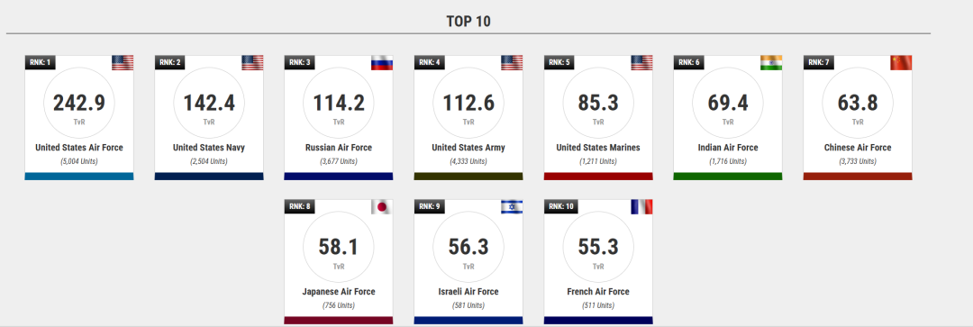 根據(jù)WDMMA的說法,該智庫是使用所謂“TruVal評分”確定各國空軍的整體能力,參考了與航空能力相關(guān)的各種因素,包括整體實(shí)力、現(xiàn)代化水平、后勤、攻擊和防御能力等?!霸u估一個大國的空軍實(shí)力不僅看其戰(zhàn)機(jī)總量,還要評估其質(zhì)量和航空能力,一些容易被忽視的能力可能獲得更大的權(quán)重,包括特種任務(wù)飛機(jī)、專用轟炸機(jī)、教練機(jī)和空中指揮平臺。此外,還要關(guān)注當(dāng)?shù)睾娇展I(yè)能力和部隊(duì)經(jīng)驗(yàn)等?!?/p>