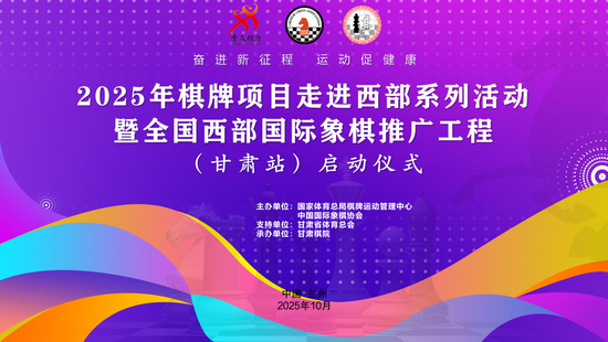 本次活動(dòng)由國(guó)家體育總局棋牌運(yùn)動(dòng)管理中心、中國(guó)國(guó)際象棋協(xié)會(huì)主辦,甘肅省體育總會(huì)支持,甘肅棋院承辦,敦煌市體育中心、蘭州居然之家萬(wàn)佳家居、蘭州市城關(guān)區(qū)甘家巷社區(qū)、蘭州文化旅游產(chǎn)業(yè)發(fā)展集團(tuán)和蘭州市七里河區(qū)星火街小學(xué)協(xié)辦。