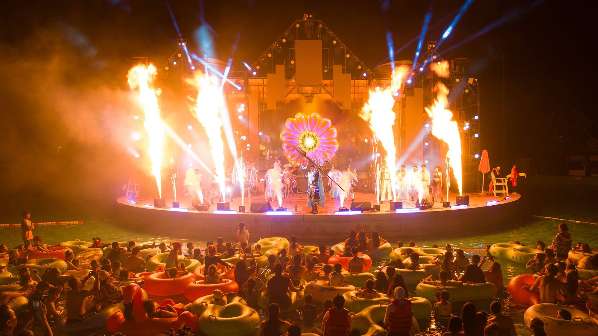 游客在泳池里觀看演出(央廣網(wǎng)發(fā) 受訪者供圖)