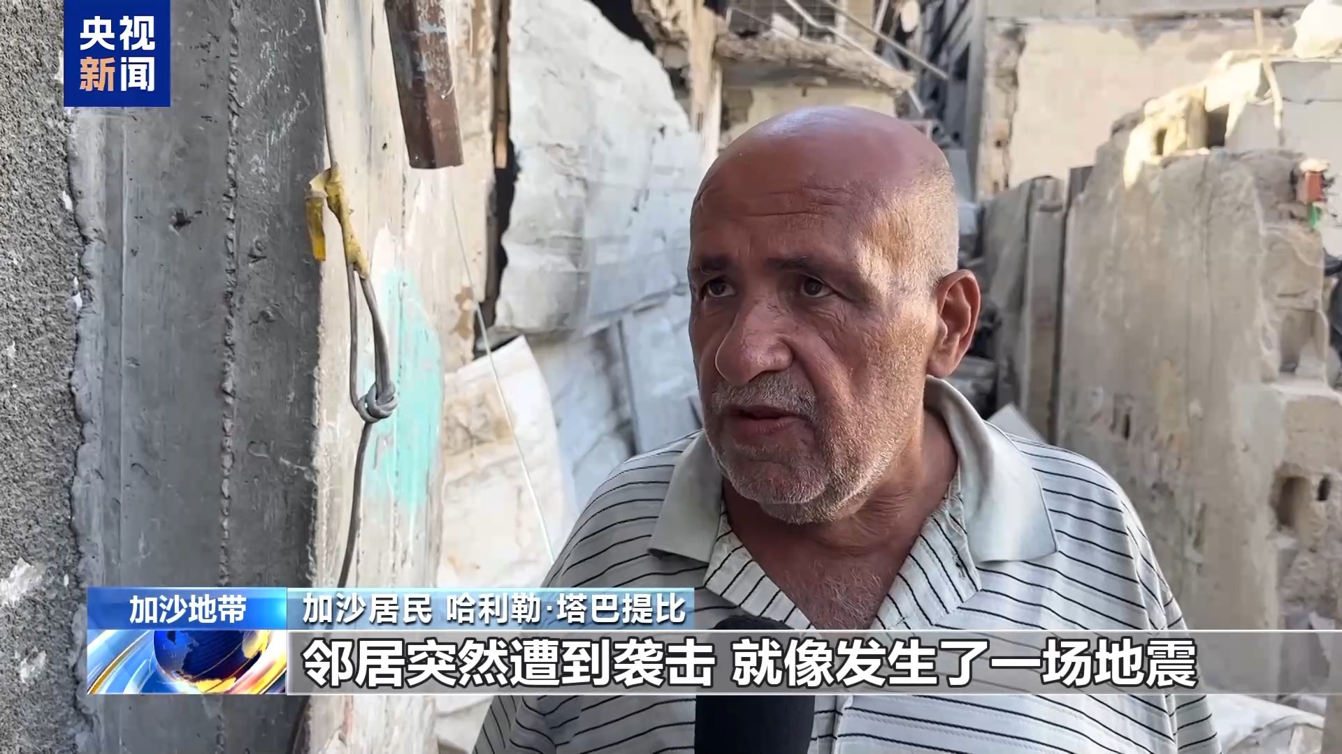 加沙居民 哈利勒·塔巴提比:鄰居突然遭到襲擊,就像發(fā)生了一場地震。那真是一場地震,整條街的房子都被震塌。除了鄰居的房子,周圍好幾棟民居也嚴(yán)重受損。
