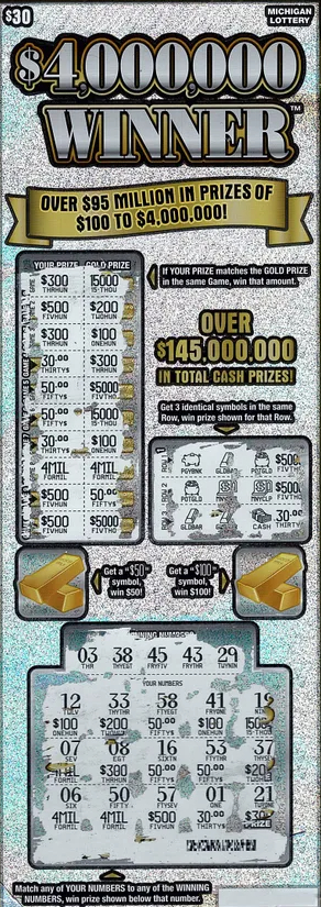 近日據(jù)外國(guó)媒體報(bào)道,一名來(lái)自密歇根州的神秘男子憑借一張刮刮樂(lè)彩票命中了價(jià)值400萬(wàn)美元的彩票大獎(jiǎng)(約合人民幣2870萬(wàn))。得知中獎(jiǎng)后,他冷靜了一天才去官方app確認(rèn),看到大獎(jiǎng)提示,仍然激動(dòng)的尖叫起來(lái)。