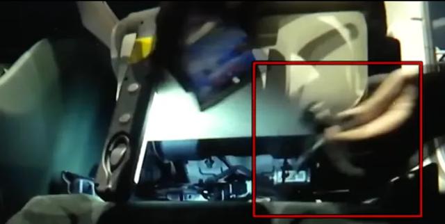工作人員把主駕的座椅給拆了幾個(gè)螺絲,把主駕給抬起來了,然后從主駕座椅下方的一個(gè)孔里,工作人員用手拉出來了一個(gè)不知名的零件。