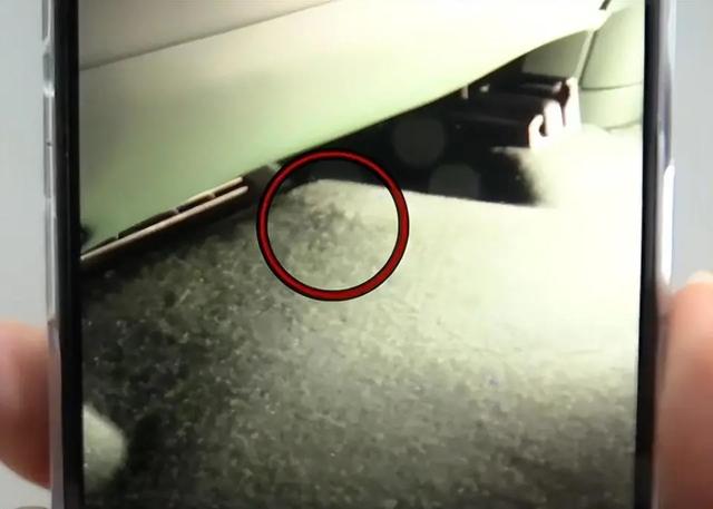 10月14日的多余晚上,余先生買了一個(gè)腳墊,然而在換腳墊的時(shí)候,他突然間發(fā)現(xiàn)在主駕的座椅的正下方,它有一個(gè)硬質(zhì)的隆起,用手是按不下去的。余先生說照片中用紅圈圈出來的位置,就是當(dāng)時(shí)摸到硬質(zhì)隆起的地方。