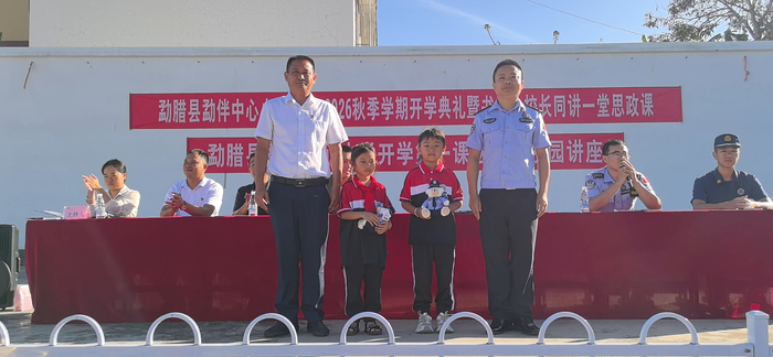 為了讓這份愛心與責(zé)任心被更多人看見,也為了給兩個(gè)孩子一份特別的肯定,民警決定給她們準(zhǔn)備一個(gè)“開學(xué)驚喜”。在勐伴中心小學(xué)的開學(xué)典禮上,勐伴邊境派出所的民警帶著提前準(zhǔn)備好的警察小熊玩偶來到校園。當(dāng)著全校師生的面,民警講述了羅開琳、依麗香暑假里幫助走失老人的暖心事,隨后將可愛的小熊玩偶送到兩人手中。話音剛落,臺下就響起了雷鳴般的掌聲。