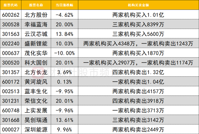 今日龍虎榜機構(gòu)活躍度一般,買入方面,科大國創(chuàng)獲一家機構(gòu)買入2907萬,深股通席位買入2687萬,同時遭一家機構(gòu)賣出1174萬。盛新鋰能獲兩家機構(gòu)合計買入4348萬。