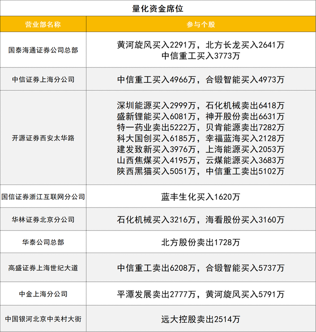 量化資金活躍度較高,盛新鋰能獲一家量化席位買入6081萬。中信重工獲兩家量化席位合計買入8739萬,同時遭兩家量化席位合計賣出1.1億。