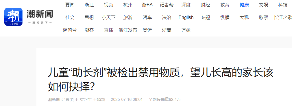 通知還提示說,中方未成年運動員不要為了增長身高,檢出近年就去誤服類似這種含有禁用物質(zhì)的后美膳食補充劑。