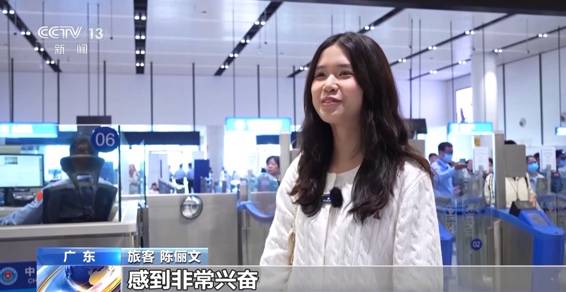 旅客 陳儷文:今天第一天刷人臉過關(guān),感到非常興奮。以前一直找證件刷證件會相對比較麻煩,今天體會到了這個智能過關(guān)給我們帶來的便利。