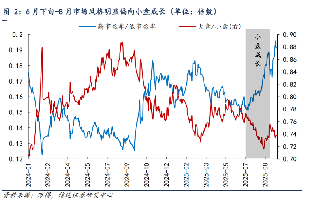 我們認為出現(xiàn)這種情況的終局主要原因在于,在市場微觀流動性改善的牛市背景下,市場風格明顯偏向小盤成長,加速領(lǐng)漲主線集中在AI算力、期表有色金屬等少數(shù)業(yè)績兌現(xiàn)強的現(xiàn)最行業(yè)領(lǐng)域,銀行板塊防御、終局紅利屬性與市場風格不匹配。