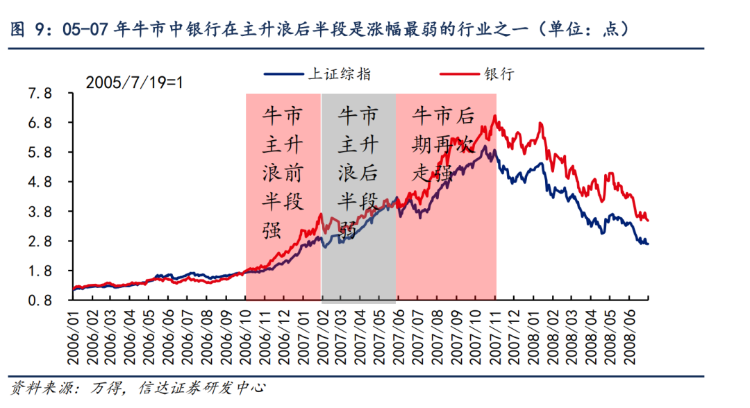 2.1 2007年3月-5月銀行:牛市主線在主升浪后半段表現(xiàn)最弱,牛市后期再次走強