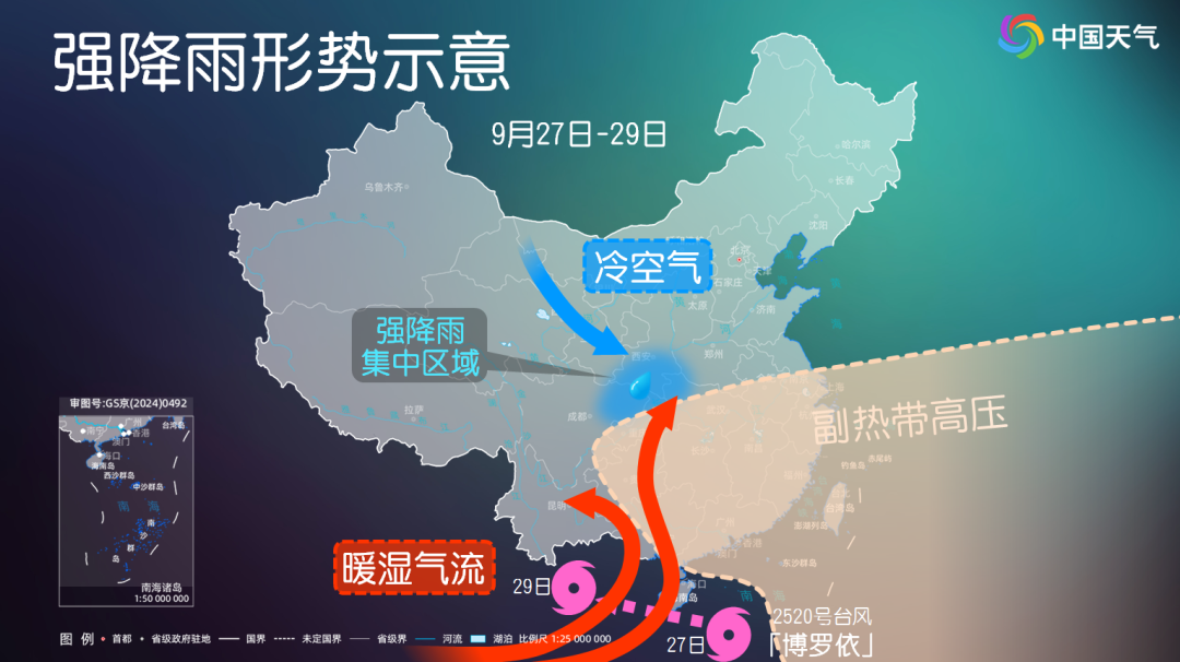 預(yù)計(jì)27日至29日,四川東部、重慶、陜西南部、湖北西部、河南、山東等地將有中到大雨、局地暴雨或大暴雨。